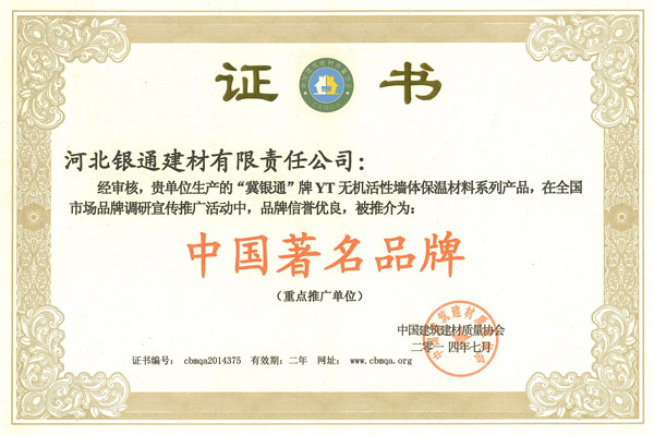 河北銀通建材有限責任公司,專注于環(huán)保節(jié)能新型保溫材料的研發(fā)和推廣,是北京質(zhì)量檢驗認證協(xié)會會員單位,公司產(chǎn)品YT無機活性保溫材料;無機輕集料保溫砂漿,無機保溫砂漿榮獲住建部:綠色建筑節(jié)能推薦產(chǎn)品證書;中國著名品牌;全國保障性住房建設(shè)用材優(yōu)秀供應商: